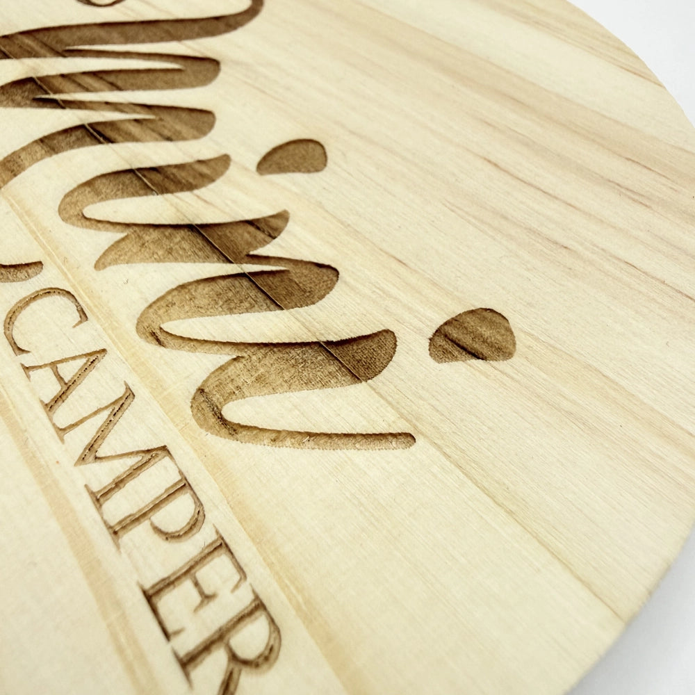 Dieser natürliche Holzuntersetzer "Mini Camper" ist perfekt für kleine Camping-Fans und Nachwuchs-Abenteurer. Süß, praktisch und voller Abenteuerlust. Jedes Stück ist ein Unikat und wird in unserer Werkstatt individuell für dich graviert.