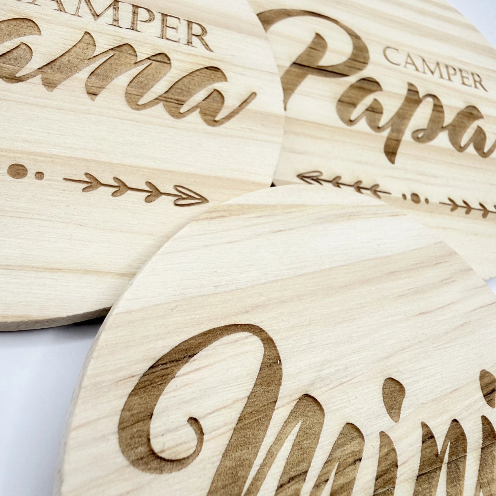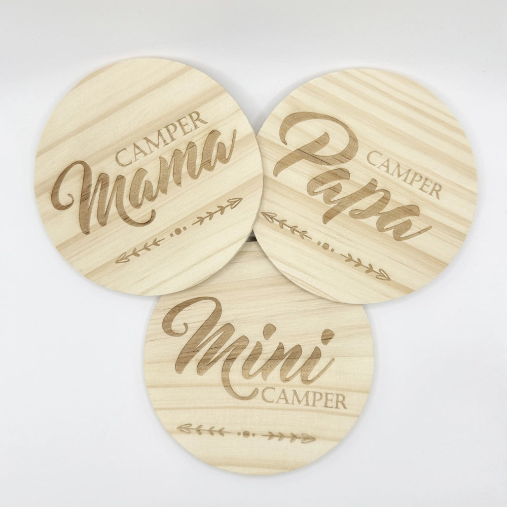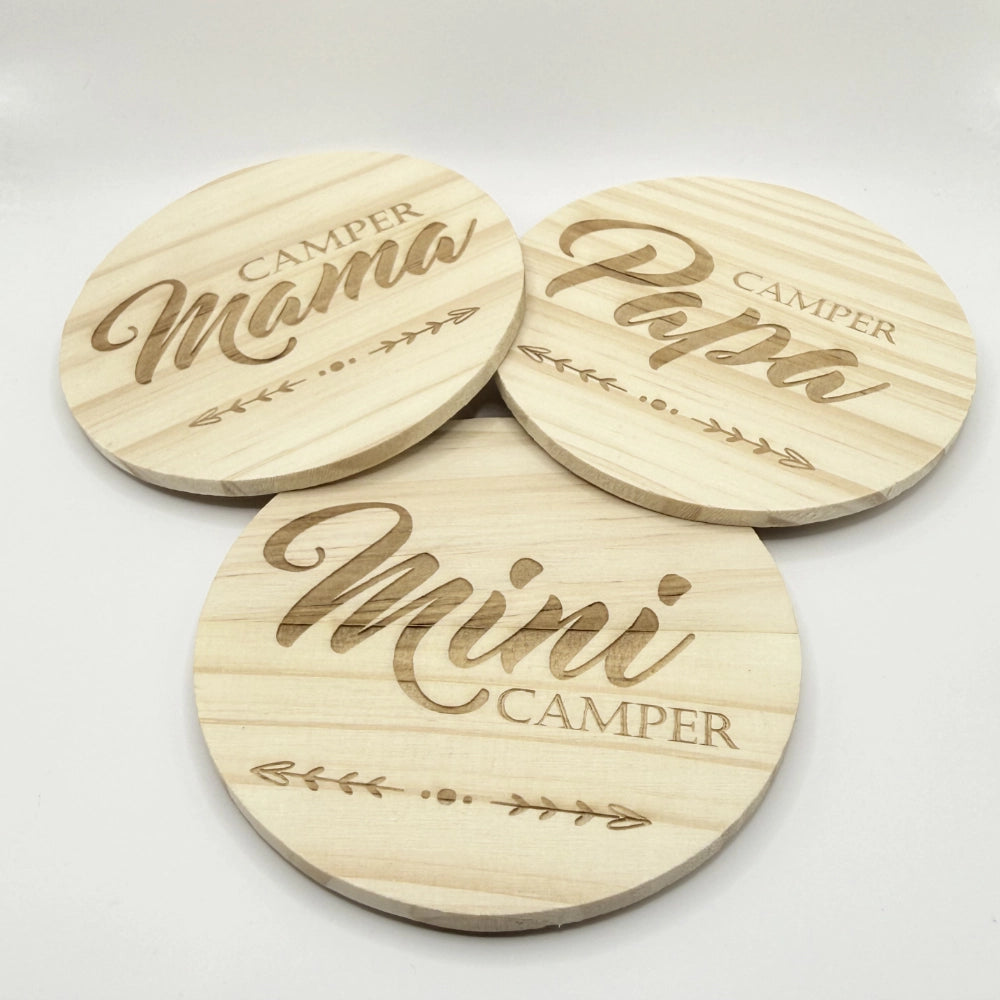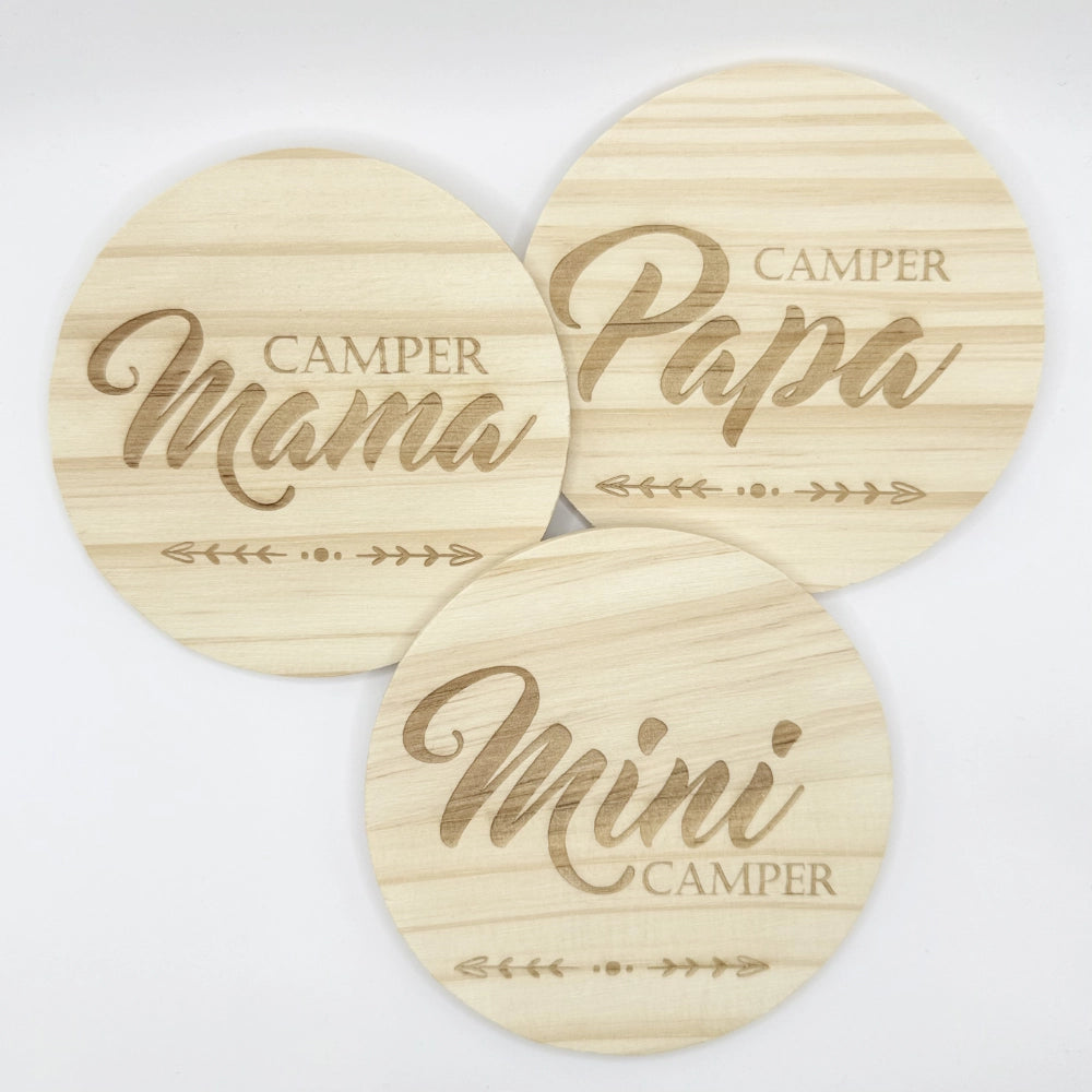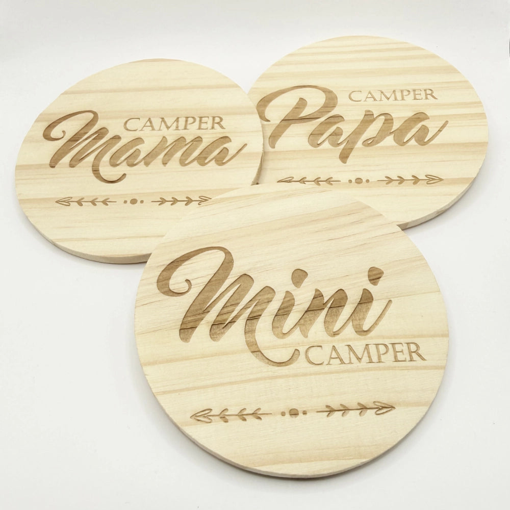 Dieses Holzuntersetzer-Set "Camper Papa", "Camper Mama" & "Mini Camper" ist das perfekte Trio für echte Campingfamilien. Ob im Wohnwagen, am Lagerfeuer oder zuhause in der Küche. Jedes Stück ist ein Unikat und wird in unserer Werkstatt individuell für dich graviert.