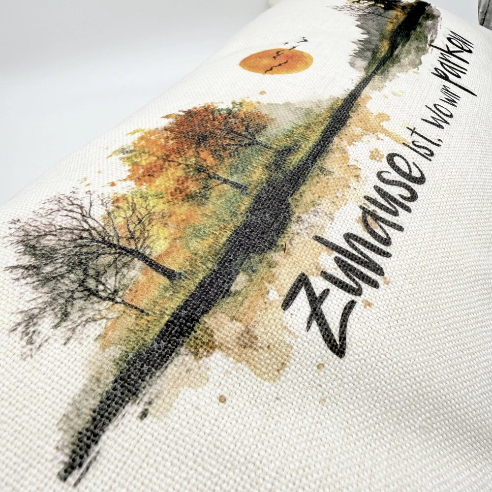 Dieses Kissen mit dem Spruch „Zuhause ist, wo wir parken“ bringt echtes Vanlife-Feeling in dein Zuhause oder Wohnmobil. Mit weicher Füllung und liebevoll gestaltetem Design. Perfekt für gemütliche Stunden unterwegs oder auf dem Sofa.
